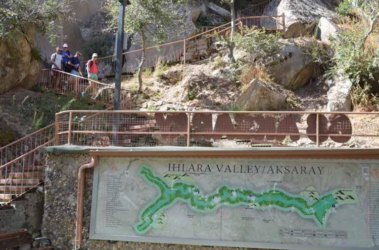 Kapadokya, Aksaray'ın Güzelyurt ilçesindeki Ihlara Vadisi ile başlıyor. Kapadokya bölgesini ziyaret eden yerli ve yabancı turistler, Ihlara Vadisi'ne de uğruyor. Kaya oyma mekanları, kiliseler ve bitki örtüsüyle her mevsim ziyaretçileri kendisine hayran bırakan 14 kilometre uzunluğundaki Ihlara Vadisi'ne, 394 basamaklı merdivenle iniliyor.