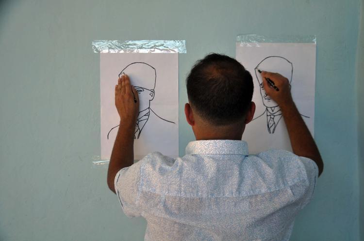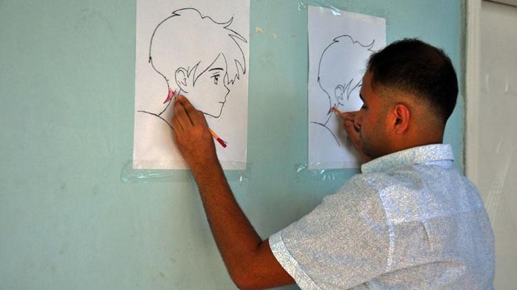 Aklına, bir anda iki eliyle aynı iki resmi çizmenin geldiğini anlatan Kozan, "Bende gelişen bu fikir üzerine deneme yapmaya başladım.