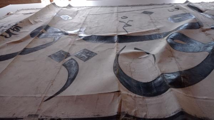 Arkadaşlarımız son rötuşları yapıyorlar. Sizin de gördüğünüz gibi kanvas üzerine yapılmış bir eser. Bu eserin eskisi kağıt üzerine ilk çalışılmışı devlet arşivleri müzesinde bulunuyor. Ancak kanvas üzerine yapılmış olan orijinali nihai hali bu.