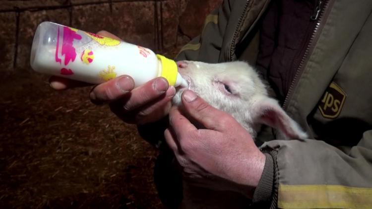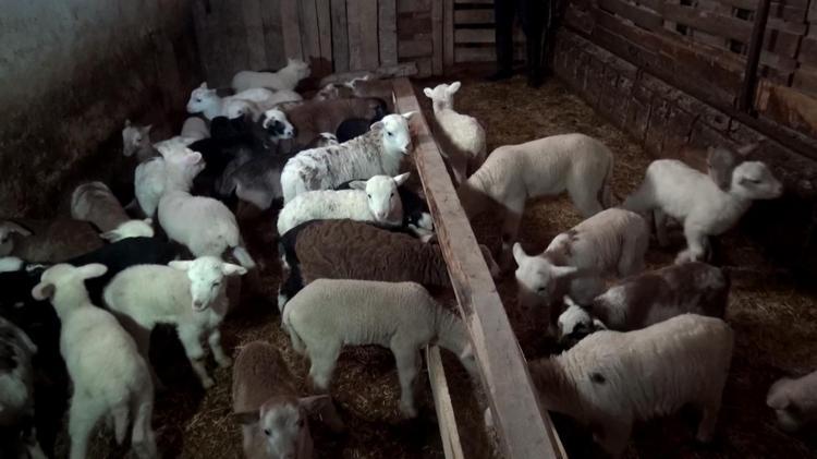 Kışın zorlu geçtiği kentte, çiftlik çalışanları, kuzulara bebek gibi bakıyor.