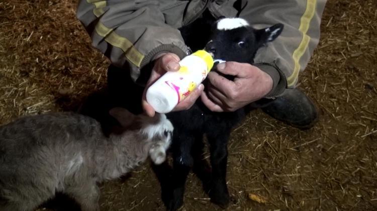 Anne sütü yetersiz kalınca çiftliklerdeki inekleri sağarak sütü biberonla kuzulara veriyoruz.