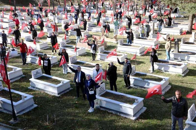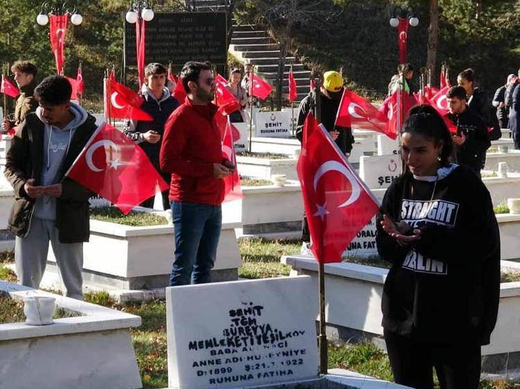 21 Temmuz 1922'de Tiflis'te Karakin Lalayan ve Sergo Vartanyan tarafından şehit edilen 4'üncü Ordu Komutanı Cemal Paşa ile 156 şehidin mezarın bulunduğu Karskapı Şehitliği'ne ellerinde bayraklarla gelen akademisyen ve öğrenciler saygı duruşunda bulundu, İstiklal Marşı okudu.