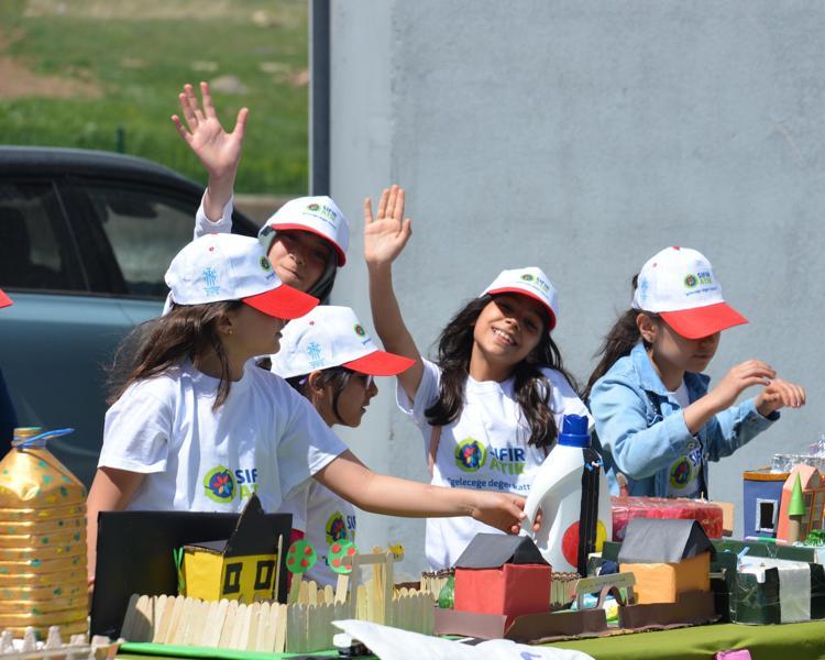 'Geri Dönüşüm ve Sıfır Atık' projesine katılan öğrenciler, topladıkları atıkları dönüştürdükleri elbiselerle defile sundu.1600 pet şişe kapağı kullanılarak elde edilen kıyafetin dikkat çektiği defilede öğrencilerin tasarımları beğeni topladı.