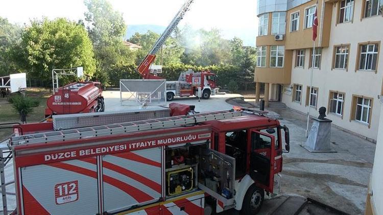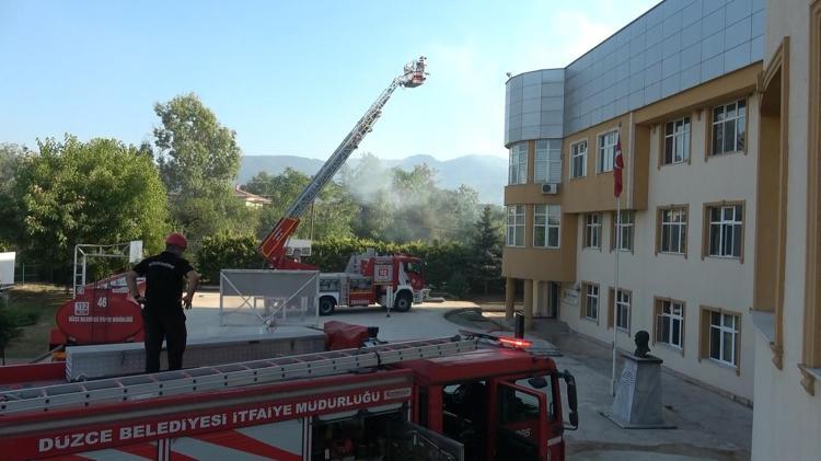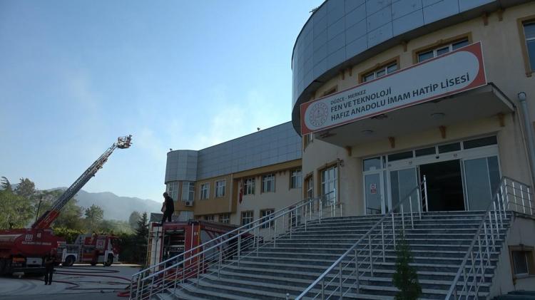 Düzce'de, imam hatip lisesinin çatısında onarım yapıldığı sırada çıkan ve binaya sıçrayan yangın, itfaiyenin çalışmasıyla söndürüldü.