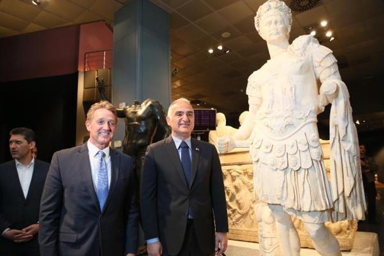 En son geçen mart ayında ABD'nin New York kentinden, büyükelçilik, Manhattan Bölge Savcılığı gibi kurumlarla da yapılan iş birliği sayesinde 12 tarihi eserin iadesi sağlandı ve Antalya Müzesi'nde sergilenmeye başlandı. Serginin açılışını yapan Kültür ve Turizm Bakanı Mehmet Nuri Ersoy, 12 eser arasında yer alan Roma İmparatoru Septimus Severus'un gerçek boyutlarda nadir bronz heykelinin eksik olan baş kısmının da geri getirilmesine yönelik çalışmaların sürdüğünü açıkladı.