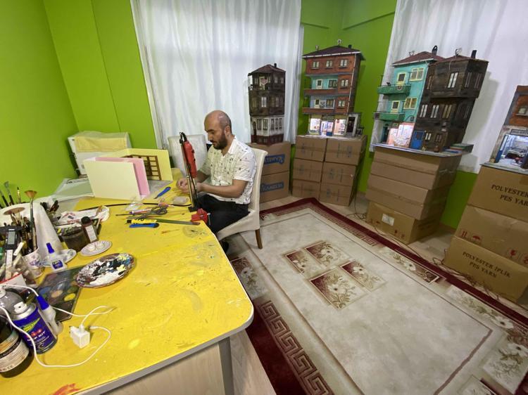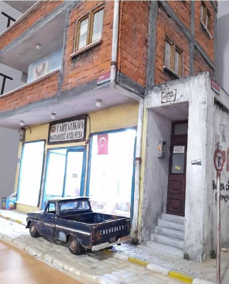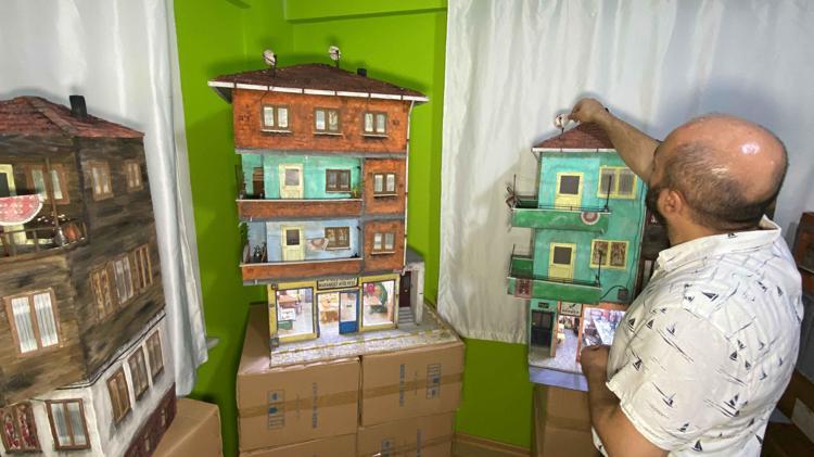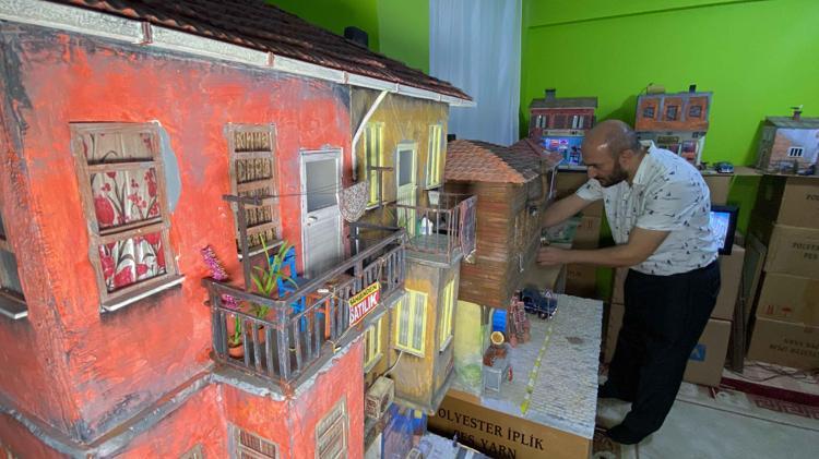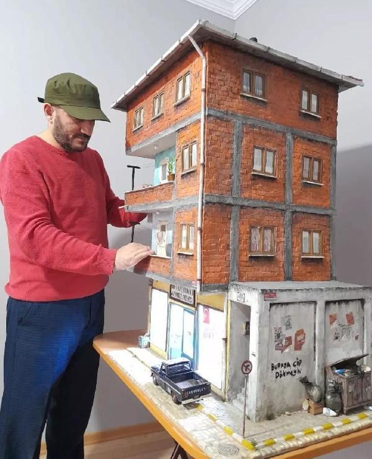Kocaeli'nin Çayırova ilçesinde esnaf İsmail Kuş (36), evinin bir odasındaki atölyede, kil, ahşap, karton ve plastik kullanarak gerçeğini aratmayan minyatür yapılar inşa ediyor. Ortalama 5- 6 bin parçadan oluşturduğu minyatürlerde balkonda asılı halı, evlerdeki eşya ve makineler ile kapının önüne atılan çöplere kadar her detayı titizlikle işleyen Kuş, "Eserlerimi satın almak isteyen çok oluyor ama ben satmak istemiyorum. Hedefim ileride sergi açmak" dedi.