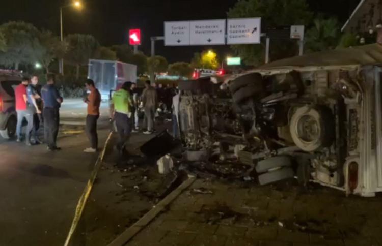 Bu sırada 35 BOS 208 plakalı otomobil ile yarış halinde olduğu öne sürülen 35 ENG 73 plakalı otomobil, sürücüsünün direksiyon hakimiyetini kaybetmesiyle kamyonete çarptı. Çarpmanın etkisiyle kamyonet de önünde park halinde bulunan O1 TD 971 plakalı otomobile çarparak yan yattı.