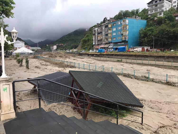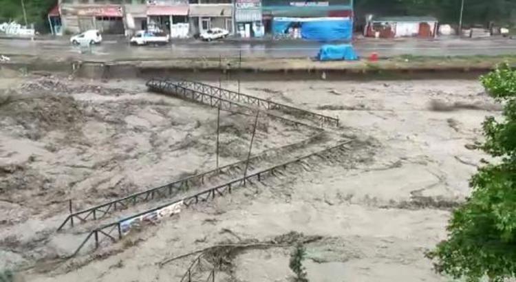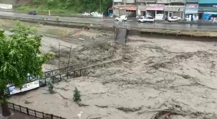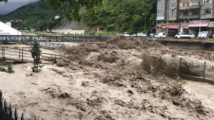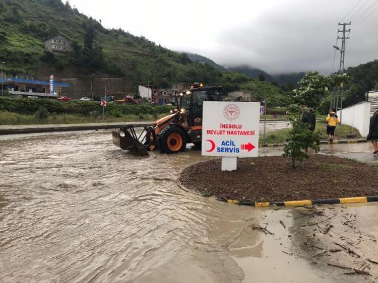 Kastamonu'nun İnebolu ilçesinde etkili olan şiddetli yağış nedeniyle ilçe merkezinden geçen çay taştı, köprüler yıkıldı. Çay kenarındaki binaların giriş katlarını su basarken, bölge halkı da üst katlara çıkmaları konusunda uyarıldı.