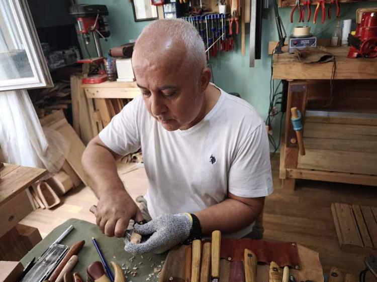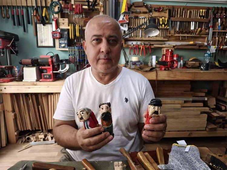 İnternetten yapmayı öğrendiği ahşap el yontması figürleri, festivallerde sergiliyor