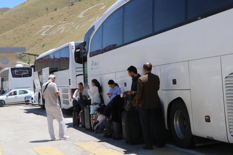 Van'ın Kapıköy Gümrük Kapısı'nı kullanarak İran'dan Türkiye'ye giriş yapan Umman vatandaşları, otobüslere binerek Trabzon'a gitmek üzere yola çıktı. Ummanlılar, buradan da ülkelerine dönüş yapacak.