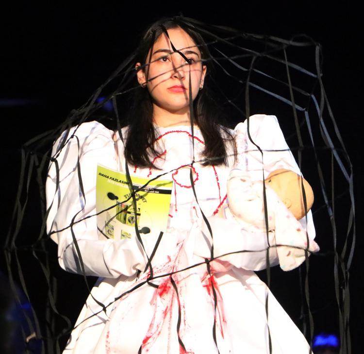 Tekstil ve Moda Tasarımı Bölümü son sınıf öğrencisi İranlı Ayda Heyderi, defileye çocuk gelinlere dikkat çekmek için tasarladığı gelinlikle katıldı. Defilede, bir elinde kitap, kucağında bebek ve üzerindeki kafesle çocuk gelin yer aldı. Tasarladığı gelinlikle ilgili bilgi veren Ayda Heyderi, "Çocuk, çocukluğunu yaşamalıdır.