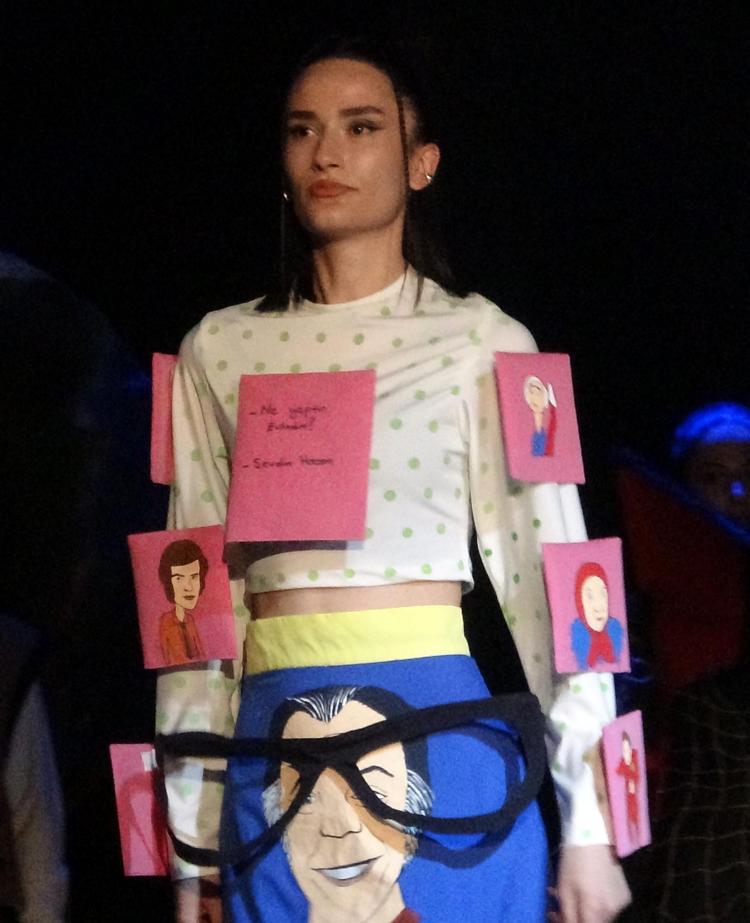 Küratörlüğünü yaptığı sergide öğrencilerin 2 yıl boyunca yaptıkları kıyafetleri sergilediklerini ifade eden Dr. Öğretim Üyesi Zeynep Kırkıncıoğlu, "Defilede sosyal konuları da gündeme taşımaya çalıştık. Arkadaşlarımız bu konuda farkındalık oluşturdu.
