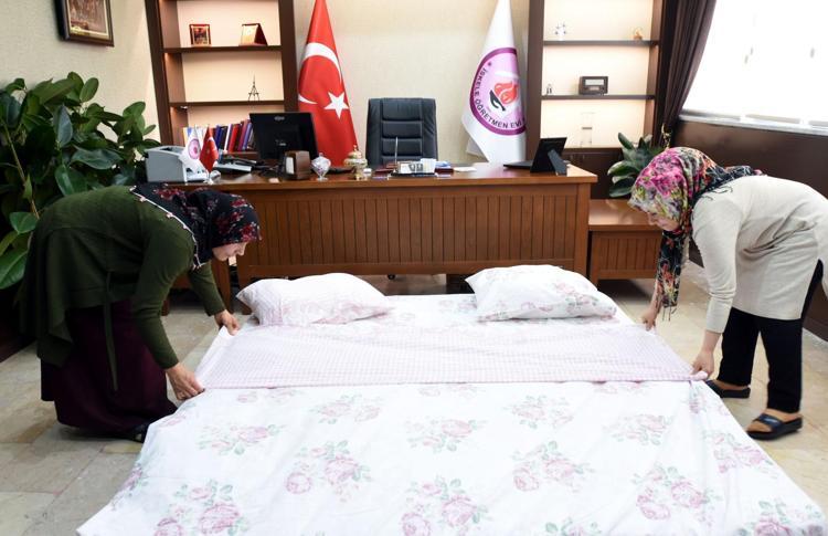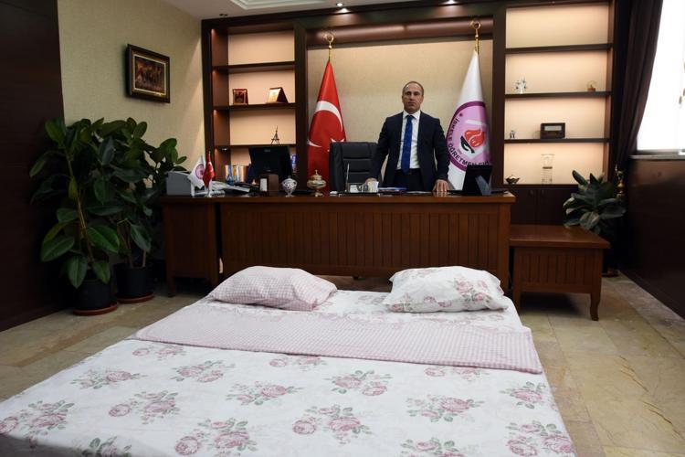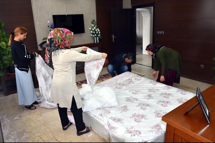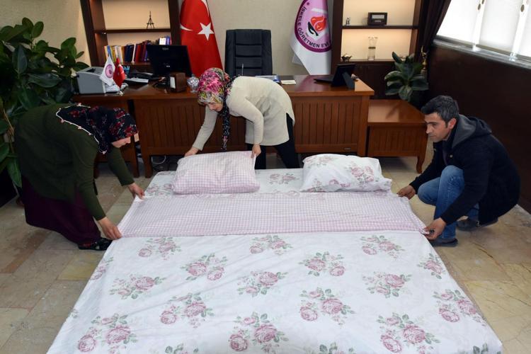 İran'dan nevruz tatili ile Alışveriş Festivali için Van'a gelen ve otellerde yer bulamayan turistlere, Tuşba ilçesi İskele Öğretmenevi Müdürü Mahmut Öztekin, makam odasının kapılarını açtı. Öztekin, İranlı turistleri makam odasında misafir ediyor.