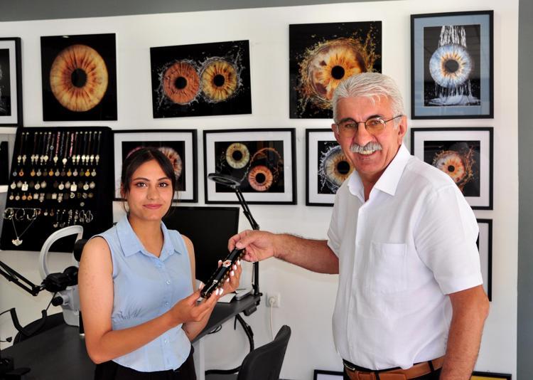 Kars’ta 15 yıl önce fotoğrafçılığa merak saran Özgen Beşli (65), parmak izi gibi her insanın kendine özel olan 'iris' tabakasının fotoğrafını çekiyor. Beşli'nin çektiği iris fotoğrafları kolye, bileklik, broş gibi takılarda kullanılıyor.