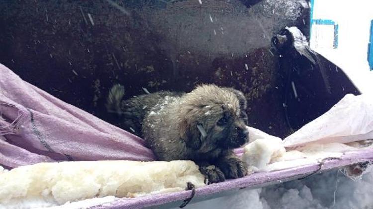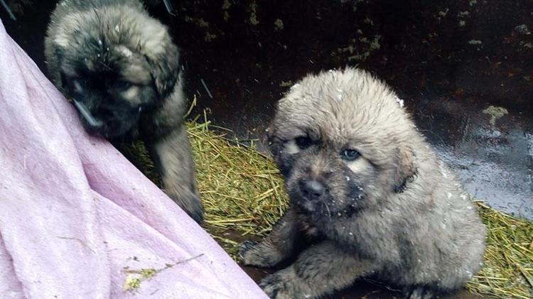 İş makinesi operatörü, kurtardığı yavru keçi ve köpeklerin üzerlerini örtüyle kapattı