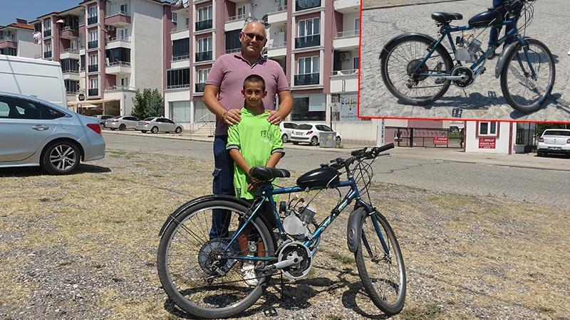 Düzce’de Ömür Topçu (43), kendisine ait bisiklete içten yanmalı 48 CC’lik motor taktı. Topçu, motorlu hale getirdiği ve düz yolda 30 kilometre hıza kadar çıkabilen bisikletini, 100 kilometrede 3 litre yakıt tüketimiyle günlük hayatında kullanmaya başladı. Topçu, “Kendi işimden evime gelebiliyorum, gündelik işlerimi halledebiliyorum. Bu şekilde bir sistem yaptım” dedi.