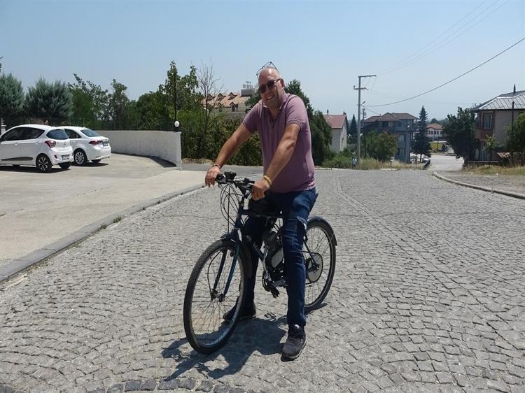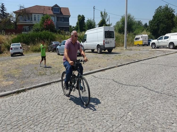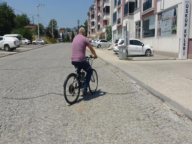 Düzce’de özel bir firmada çalışan Ömür Topçu, kendisine ait bisiklete 48 CC’lik içten yanmalı motor taktı. 25 yıldır Düzce’de yaşayan Topçu, düz yolda 30 kilometre hıza kadar çıkabilen bisikletiyle, özel bir firmada tekniker olarak çalıştığı işine gidip gelirken, günlük işlerini de halletmeye başladı. 100 kilometrede 3 litre yakıt yakan bisikletiyle hem zamandan hem de masraftan tasarruf ettiğini belirten Ömür Topçu, “Zincir dişli sistemini, gergisini bir de bisikletimin kendi orijinal zincir kısmını vites kısmını boşta bırakmadım. Hibrit bir sistem oldu aslında. Motorun gücünün yetmediği yerde ben pedalı çevirerek aynı şekilde rampa yukarı çıkabiliyorum. 20-25 kilometre hızla da olsa çıkabiliyorum rampa yukarı. Trafikte kenarda seyredebiliyorum. Kendi işimden evime gelebiliyorum. Kendi gündelik işlerimi halledebiliyorum. Bu şekilde bir sistem yaptım. İki zamanlı eski mobilet motorlarından 48 CC bir motor gücüne sahip. Ayriyeten bir debriyaj kavramasına sahip. Elle kontrollü ayakla tahrik verip çalıştırabiliyoruz. Maksimum hızım 10 derecelik bir eğim de 40 kilometre, rampa aşağı inerken 50 kilometreyi buluyor. Düz yolda ise 30 kilometre hızda seyredebiliyorum” dedi.