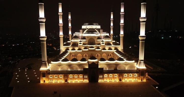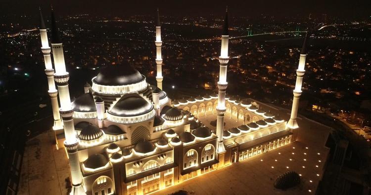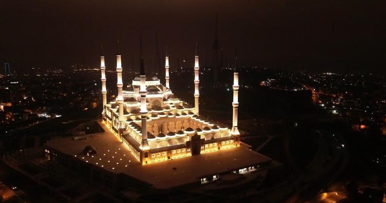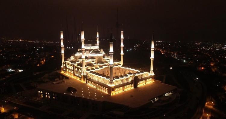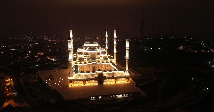 Işıklandırma testleri yapılan Çamlıca Camii böyle görüntülendi