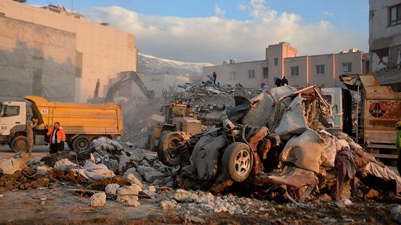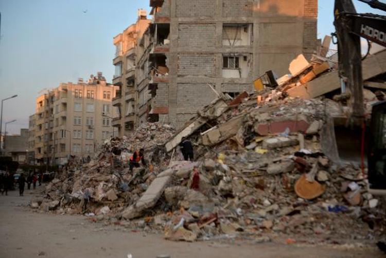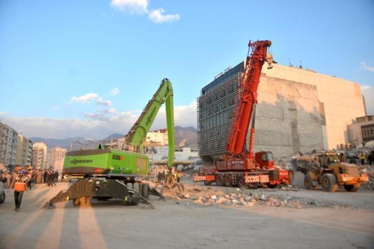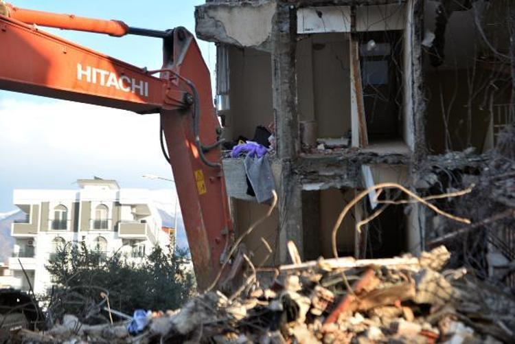 Kahramanmaraş merkezli 7.7 ve 7.6 büyüklüğündeki depremlerin vurduğu Hatay'ın İskenderun ilçesinde arama- kurtarma faaliyetleri devam ederken, çalışmaların bittiği binalarda ise iş makineleri yardımıyla enkaz kaldırma çalışması başlatıldı.