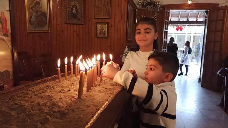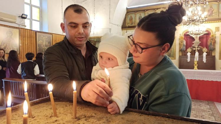 Hatay'ın İskenderun ilçesindeki Aziz Corc Rum Ortodoks Kilisesi'nde Noel ayini yapıldı. Ayin öncesi 'Noel Baba' kostümlü kişi tarafından çocuklara hediye dağıtıldı.