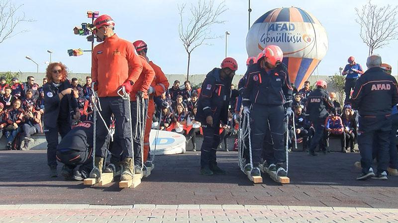 "DEPREMİ BİRE BİR YAŞADIM"Heyecanlı olduğunu ifade eden AFAD gönüllüsü Rabia Metin, "AFAD gönüllüsü olduğum ve bilinçlendiğim için çok mutluyum. Herkesi gönüllü olmaya teşvik ediyorum. 1999 Depremi'nde Sakarya'daydım. Depremi bire bir yaşadım. Ne yapmamız gerektiğini, nasıl müdahale etmemiz, nasıl korunmamız ve nelerden kaçınmamız gerektiğini bilmemiz gerekiyor. Burada yangın tatbikatları, göçük altı eğitimleri, psikolojik yardım eğitimleri aldık" diye konuştu.Etkinlikler, 'Çök-Kapan-Tutun Deprem Anı' tatbikatının başlayacağı 18.57'e kadar devam edecek.