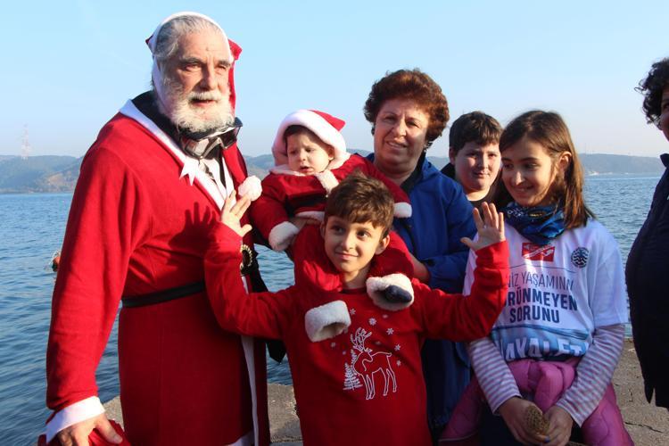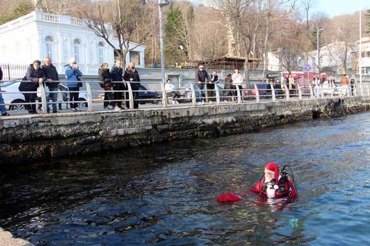 İstanbul Boğazı'na dalan Noel Baba denizden plastik balık çıkardı