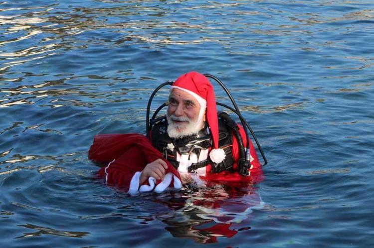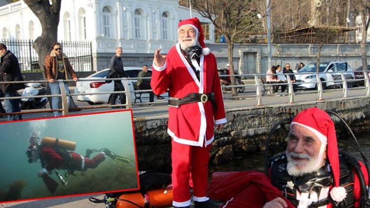 Noel Baba kılığında dalış yapan Saruhan Singen'e Yener Kuşçu ve Gökhan Karakaş eşlik etti.