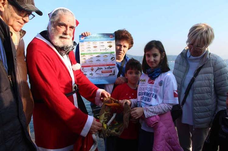 İstanbul Boğazı'ndaki balık avını protesto etmek ve denizlerdeki kirliliğe dikkat çekmek isteyen Derindere Saygı Dalış Topluluğu Noel Baba kılığında dalış yaparak denizden plastik balık çıkardı. Çocuklarımıza plastik balık bırakmayalım diyen Noel Baba kirliliğe dikkat çekti.