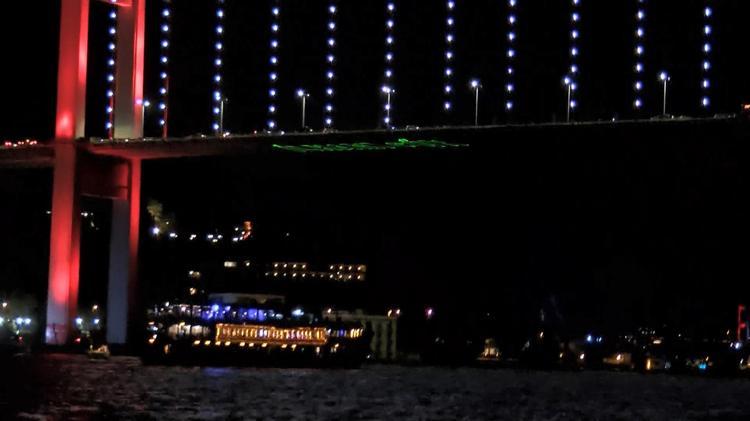 İstanbul Emniyet Müdürlüğü'ne bağlı Deniz-Liman Şube Müdürlüğü ekipleri 'İstanbul Huzur' denetimleri kapsamında boğazda bulunan tur ve eğlence teknelerine yönelik denetim yaptı. Denetim sırasında 15 Temmuz Şehitler Köprüsü'ne lazer yansıtan bir yata 6 bin 900 lira ceza yazıldı.