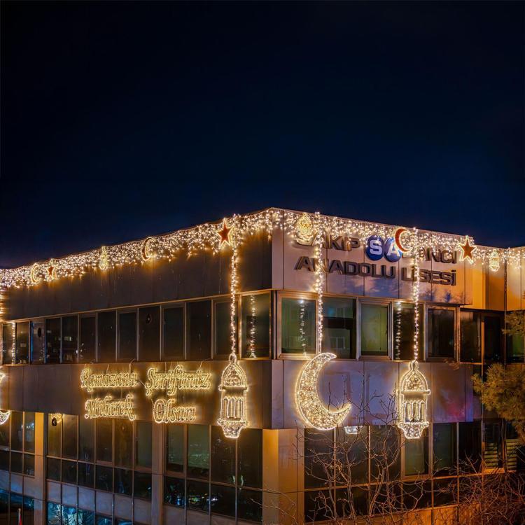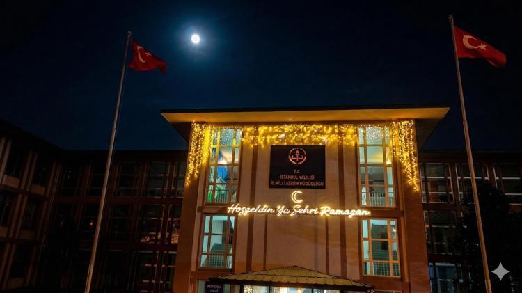 Ramazan ayının manevi atmosferi camiler, meydanlar ve sokaklarda hissedilmeye devam ediyor. Hoşgörü, paylaşma ve kardeşlik iklimini okullarda da sürdürmek için eğitim kurumlarının dış cepheleri ışıklandırıldı. İstanbul İl Millî Eğitim Müdürlüğü binasının yanı sıra pek çok okulun dış cephesi özel ışıklandırma ve süslemelerle donatıldı.
