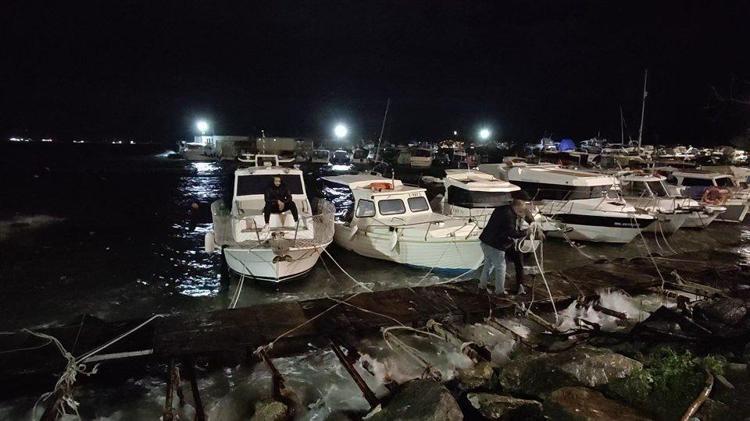 İstanbul'da gece saatlerinde başlayan fırtına nedeniyle oluşan dev dalgalar Ambarlı Balıkçı Limanı’nda mendireği aşarak, bariyerleri ve demir tel örgüleri devirdi. Barınakta hasar oluştu.