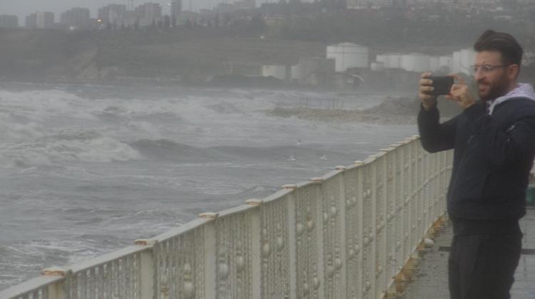 Dev dalgalar kıyıya vurdu. Sahilde yürüyüşe çıkan vatandaşlar ise yürümekte zor anlar yaşadı. İBB Afet Koordinasyon Merkezi'nden (AKOM) yapılan açıklamada vatandaşlardan tedbirli olunması istendi. Muharrem ÇAM- Emre KURT/ İSTANBUL, (DHA)