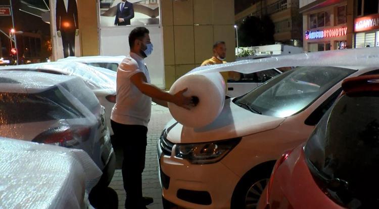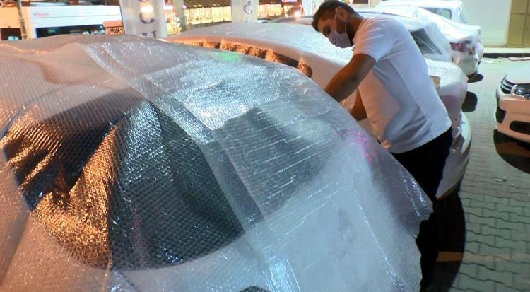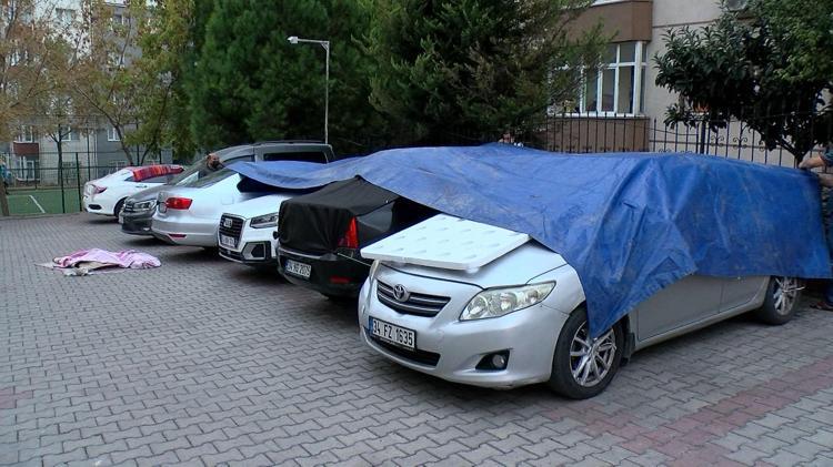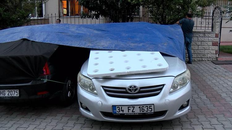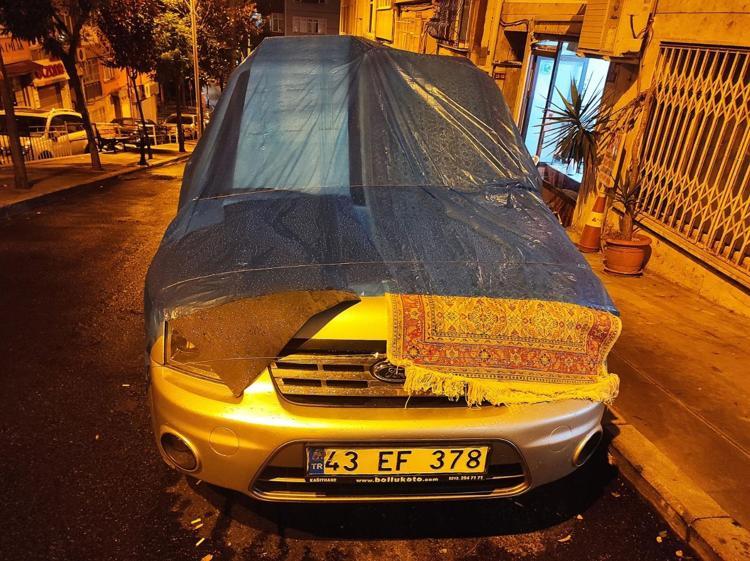 İstanbul'da otomobillerini dolu yağışından korumak isteyenler otoparklara akın etti. Otomobillerini otoparka koyamayanlar ise evlerinde bulunan halı, battaniye, branda ve dışarıdan aldıkları inşaat malzemeleri ile araçlarını korumaya aldı. DHA