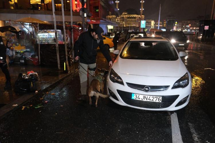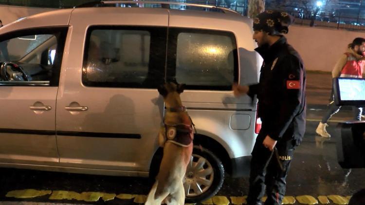 Taksim Meydanı'nda oluşturulan polis kontrol noktasında şüpheli görülen araçlar tek tek durdurularak, narkotik köpeğinin de desteği ile didik didik arandı.