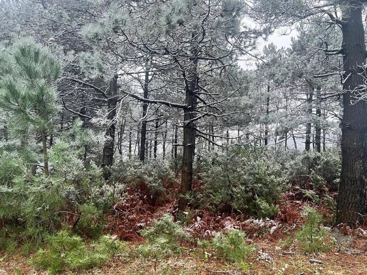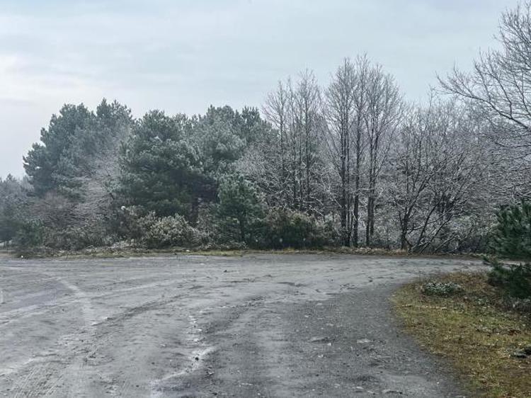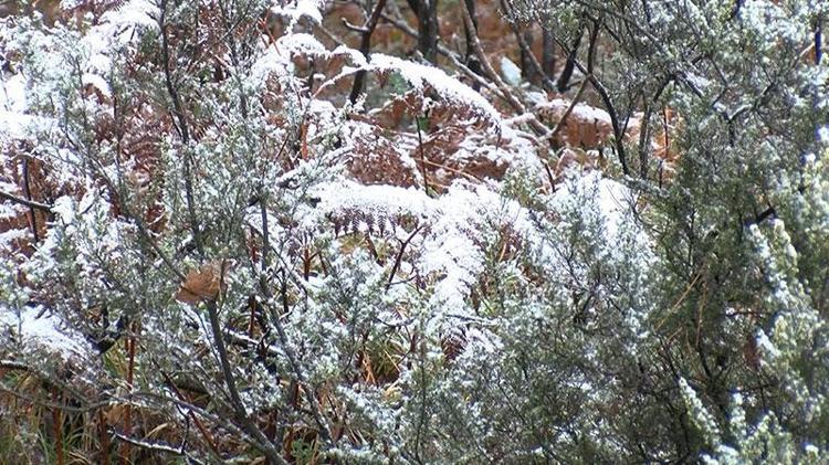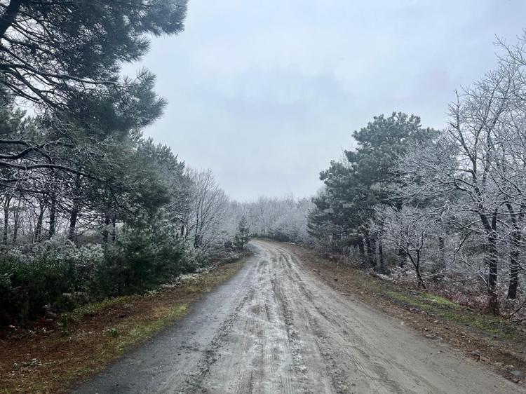Aydos Ormanı'nın yüksek kesimlerinde ağaçların karla kaplandığı görüldü.