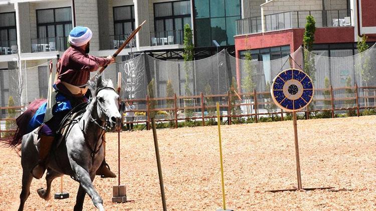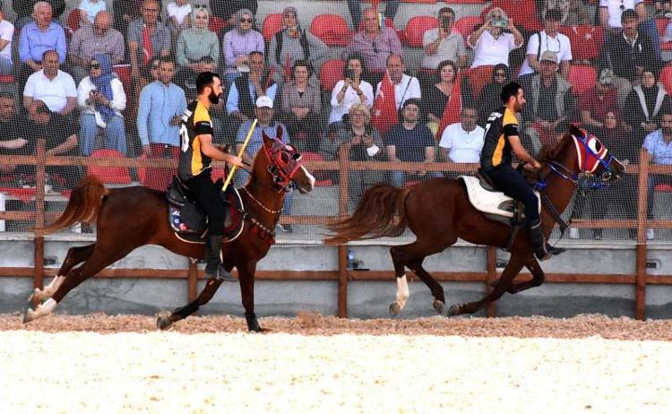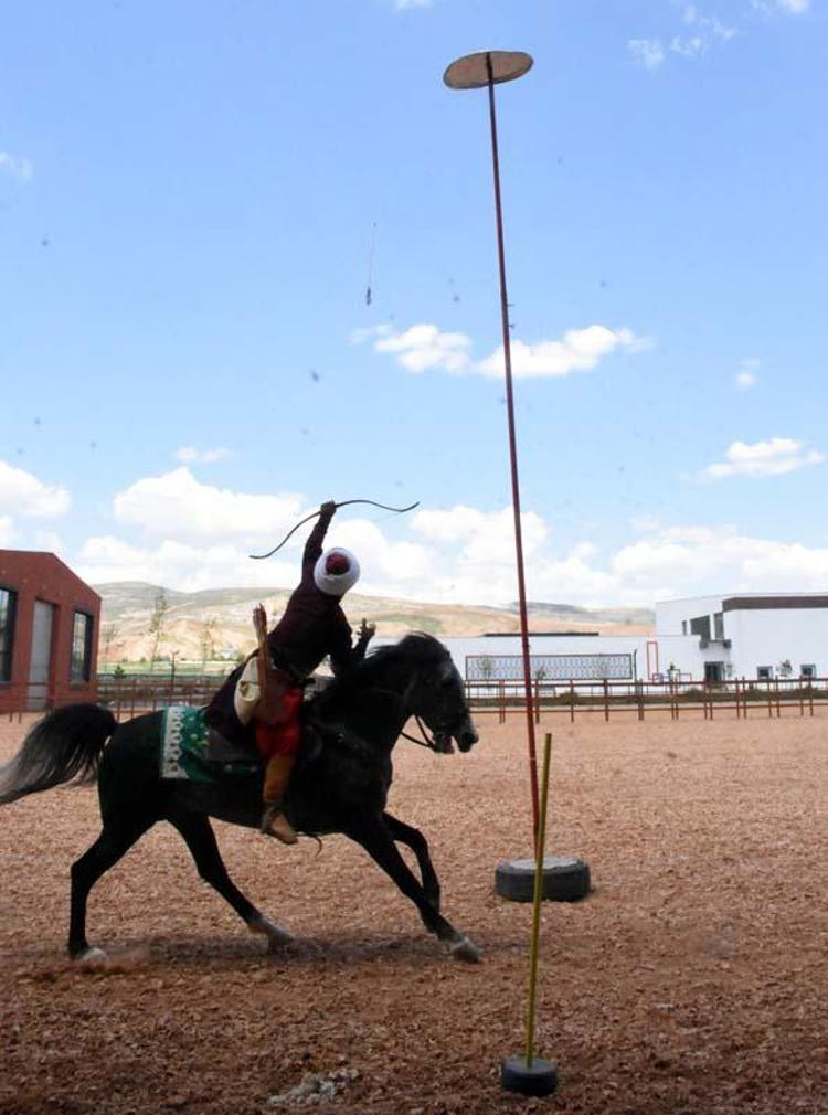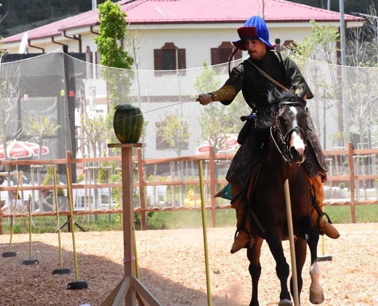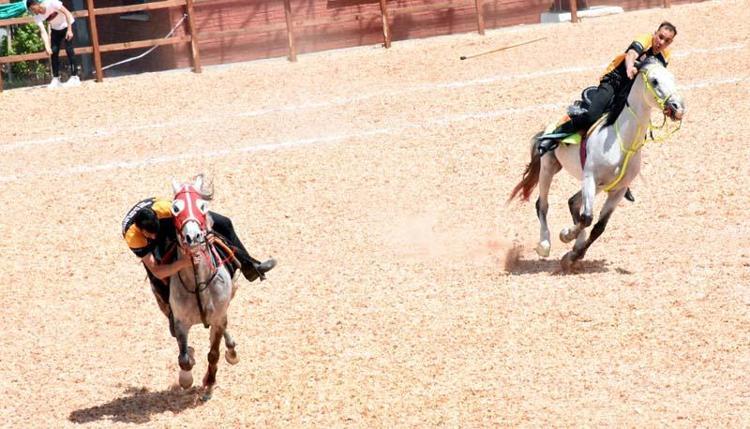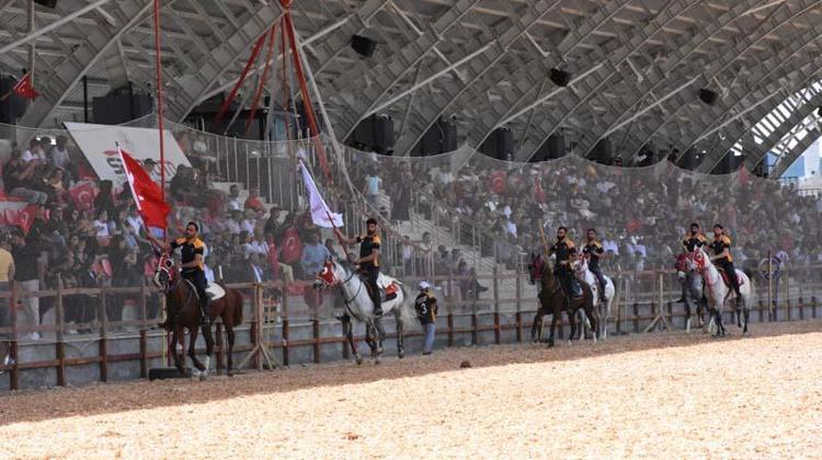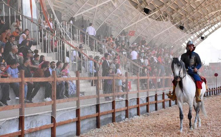 Geleneksel atlı okçuluk, cirit ve savaş atları gösterisinde at üzerinde ok atan sporcular, izleyicilere heyecanlı anlar yaşattı.