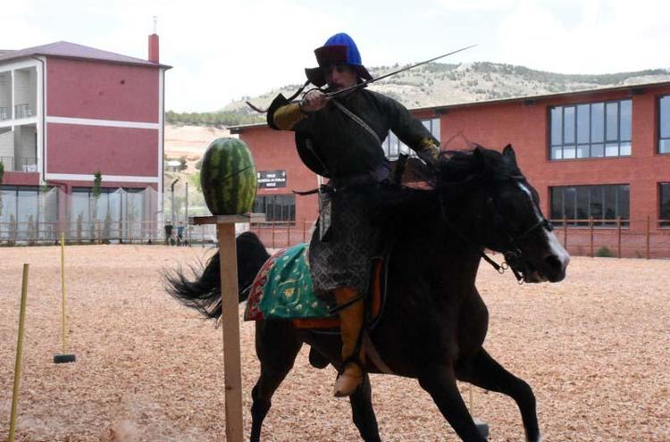 Sivas Valliği tarafından İstanbul'un fethinin 569'uncu yıl dönümü etkinlikleri kapsamında Hamidiye Kültür Bahçesi'nde ata sporları sergilendi.