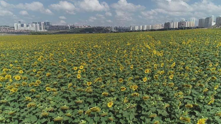 İstanbul'un iki yüzü; bir yanda gökdelenler, bir yanda uçsuz bucaksız ayçiçeği tarlaları