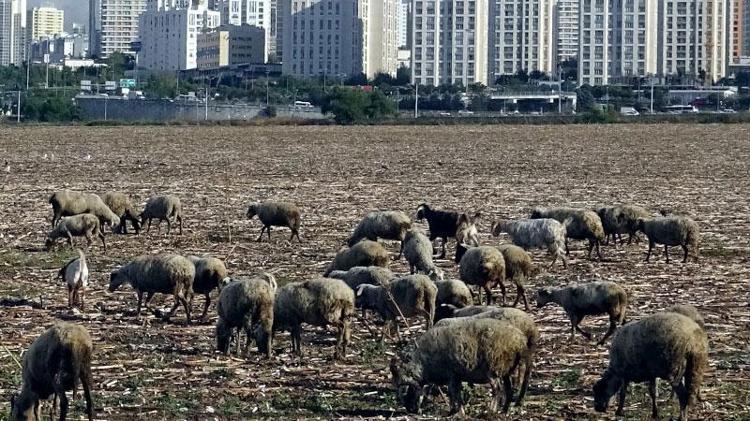 İstanbul'un iki yüzü, gökdelenler arasında otlayan hayvanlar