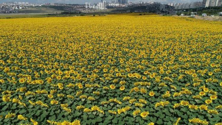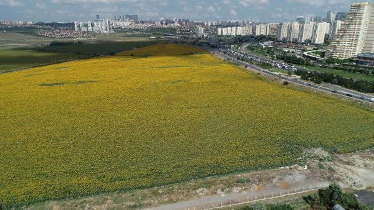 Avcılar'da Küçükçekmece Gölü ve Tahtakale Mahallesi'nin ortasında kalan Ispartakule'nin çevresindeki tarım arazisi, ekilen ayçiçekler nedeniyle renkli görüntüler oluşturmuştu.