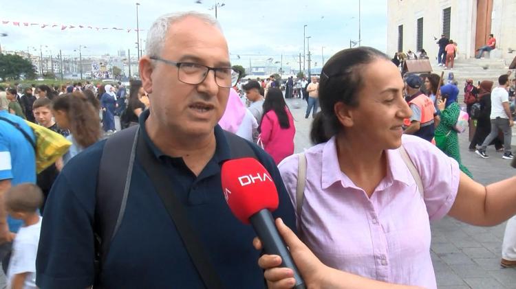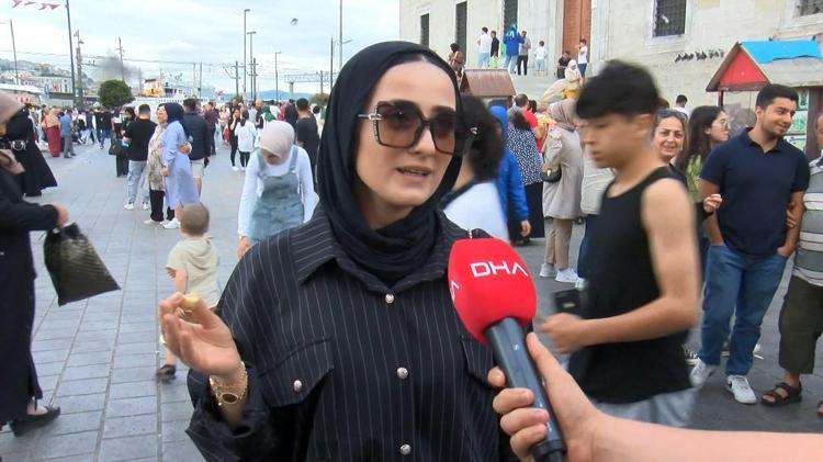 Almanya'dan Eminönü meydanına gelen Musa Doğan, "Almanya'dan Bursa'ya geldik. Bayramı geçirmek için buraya geldik. Eminönü çok kalabalık, Eminönü'ndeydik. Fatih, ondan sonra Beşiktaş'a gittik. Geziyoruz, müthiş bir kalabalık. İstanbul güzel ama baya bi pahalılık var. Tarihi mekanları gezmek için fazla zaman bulamadım. Ama gezmeyi düşünüyor daha yarında buradayız" dedi.  Sivas'tan ailesini ziyaret için İstanbul'a gelen Zeynep Karademir ise, "İstanbul zaten çok başka bir memleket, ayrı bir memleket. Yani İstanbul bence anlatılmaz yaşanır, tek kelimeyle. Sivas'tan ailemi ziyaret etmek için geldim. Ulaşım falan çok sıkıntı diyorlar ama bence yürüme her yere birbirine yakın. Türbeleri ziyaret ettik. Camileri ziyaret ettik. Balık ekmek yedik burada. Yani birçok yere gittik de şimdi tek tek isimlerini sayamayacağım ama çok güzel yerlerde çok güzel ibadethanelerde, ibadetlerimizi yerine getirdik" diye konuştu.