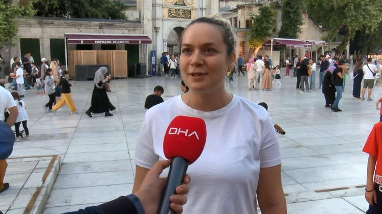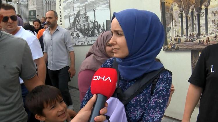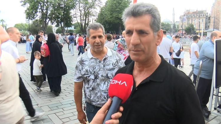 Ayasofya Camii'ne Yalova'dan gelen Ahmet Duyar, "Yalova'dan geliyorum. Ben tersanede çalışıyorum. Bayramda gezmeye geldim. Çok güzel geçti.  Ayasofya'yı ziyaret ettik. Her tarafa gittik. Fatih'e gittim, BaÄŸcılar'a gittik. MisafirliÄŸe gittik" dedi. Gamze Sünger ise, "İstanbul aslında ilk geldiÄŸimizde çok tedirgin etti. Ama çok güzel, güzel yerler yani, çok beÄŸendik. Çok iyi, yani insan büyüleniyor diyebilirim. Åžimdi Sultanahmet'e gideceÄŸiz. Ondan sonra tabii ki Eminönü'ne balık ekmek yemeye" dedi.Â