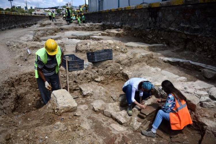 Ağırlıklı olarak Bizans dönemine ait tarihi kalıntıların ortaya çıktığı alanda İstanbul Müzeler Müdürlüğü'ne bağlı 15 arkeolog eşliğinde kazı çalışmaları titizlikle sürüyor.