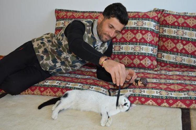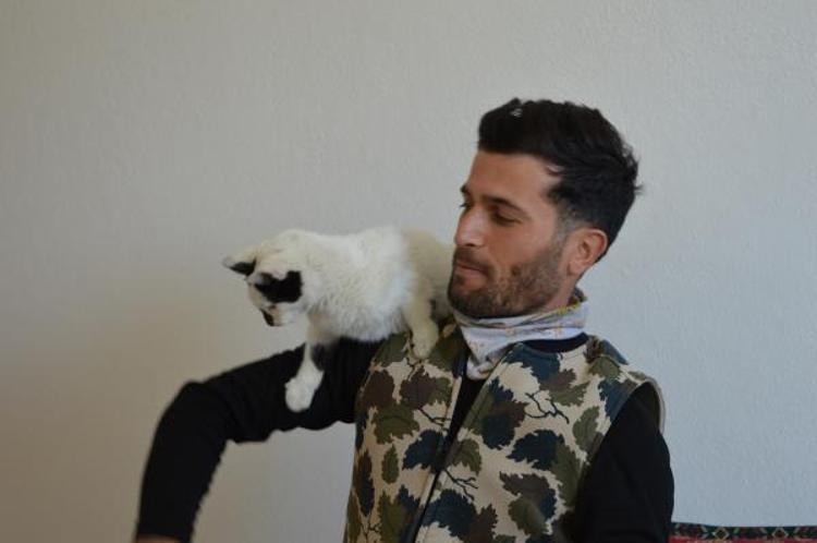 Ekibin maskotu olan kediyi, kurtarma çalışmalarında görev yapan itfaiye eri Ali Çakas sahiplendi. Çakas, Mardin'e getirdiği kediye özenle bakıyor.