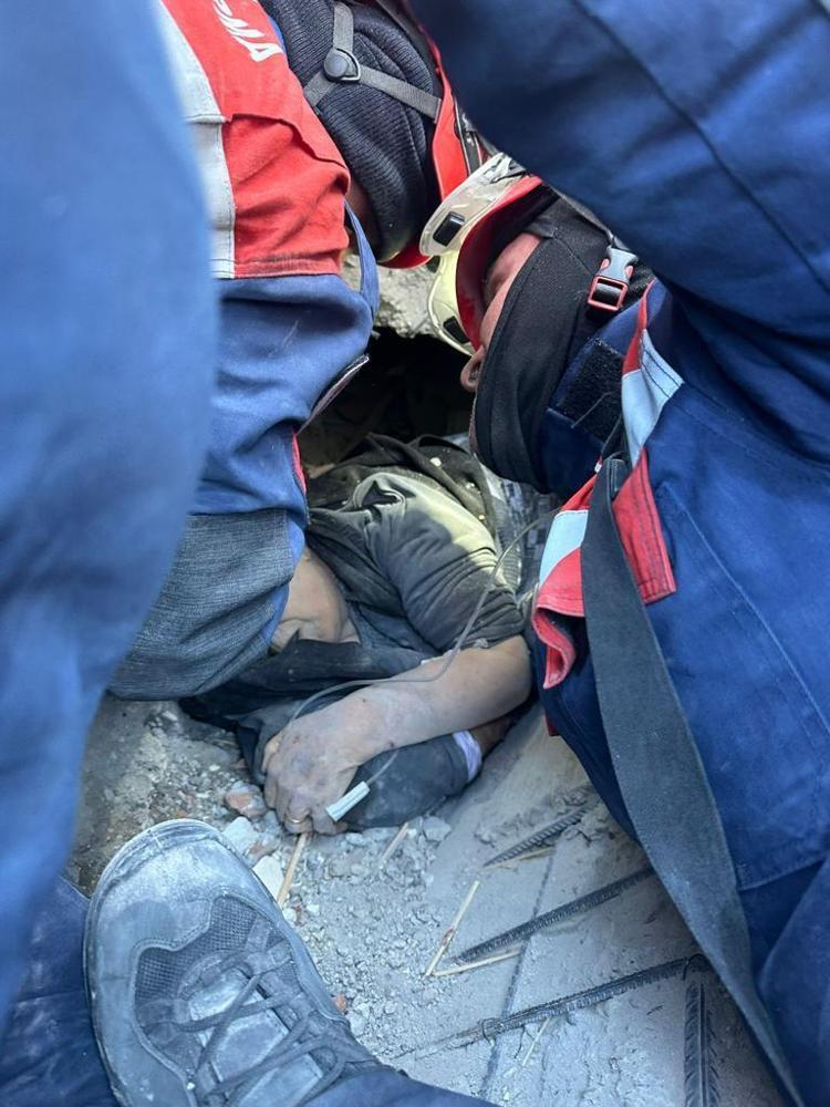 İlk önce babaanneyi kurtardık daha sonra 2,5 yaşında bir kızımız enkazda açtığımız yaşam koridorundan bize sürünerek geldi. Daha sonra anne ‘Bebeğimi kurtarın’ dedi. Ekip arkadaşımız sürünerek anneye ulaştı ve bebeğini battaniyeye sarıp enkazdan çıkarttı. En son da anneyi aldık. Çocukları babaya teslim ettik. Biz daha önce de işimiz gereği hayatlara dokunduk ama bu çok farklı, çok değişik bir durum. Tarifi çok zor”