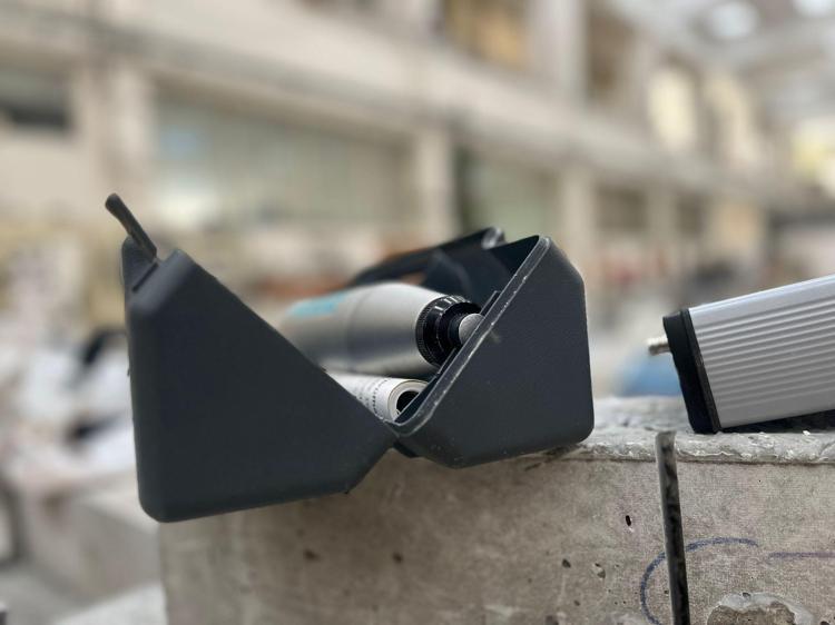 Bununla ölçüm yaptığınız zaman, yıllar geçmiş bir binada beton karbonatlaşıyor, zamanla karbondioksit gazını alarak kalsiyum karbonata dönüşüyor. Beton yüzeyi karbonatlaştığı için yüzeyi sertleşiyor, yani 40 senelik binaya ölçüm yaptığınız zaman karbonatlaşma sertliğini ölçüyorsunuz, betonun kalite sertliğini ölçmüyorsunuz. Daha güçlü gözükebilir, işte buraya dikkat etmemiz gerek. Yeni binaları Schmidt çekici ile ölçerseniz o binalarda karbonatlaşma olmamış oluyor daha gerçekçi sonuçlar çıkıyor. Sadece Schmidt çekici ile ölçerlerse, tecrübeli değillerse hata yaparlar. Mesela yangın olmuş bir binada Schmidt çekici ile ölçüm yapamazsınız çünkü Schmidt çekici betonun içinde olan çatlakları görmez. Bu ultrasonik metot ile ölçtüğünüz zaman içinde çatlak olup olmadığını gören bir alet Schmidt çekici bunu görmez. "Bu gördüğünüz ultrases aleti. Beton kalitesi ölçüyor, dalgayı ölçüyor. Şu an beton mükemmel gözüküyor" diye konuştu.