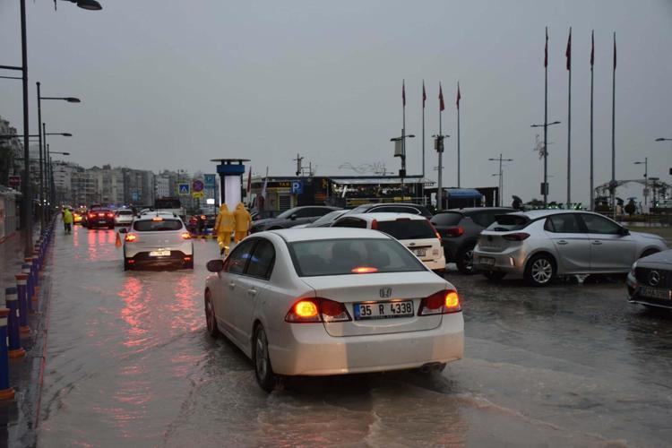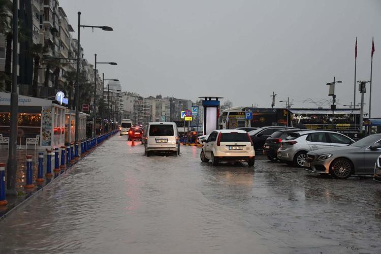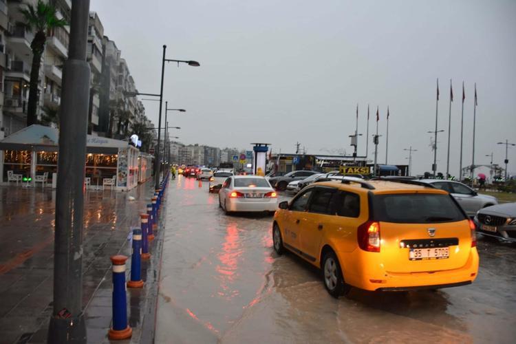 Özellikle Alsancak Vapur İskelesi'nin yakınındaki bölümlerde araçlar yolda geçerken güçlük yaşadı. Uzun araç kuyrukları oluştu. Aralıklarla etkisini hissettiren sağanak saat 17.30 itibariyle durdu. Yağmurun durmasıyla birlikte yolda biriken sularda çekildi.