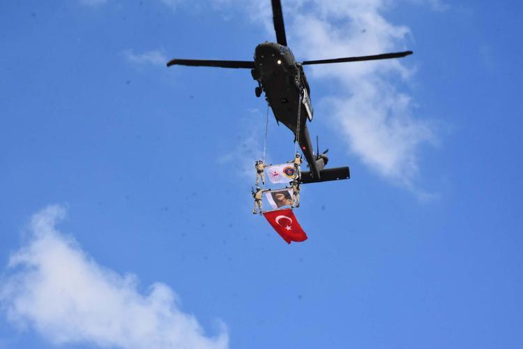 İzmir Foça'daki Jandarma Albay M. Remzi Kızılsu Atış Alanı'nda gerçekleştirilen Boran 7 Uluslararası Keskin Nişancı Yarışması seçkin gözlemci gününde helikopterden keskin nişancı atışları ve çelik kanatlar uçuş gösterileri gerçekleştirildi.