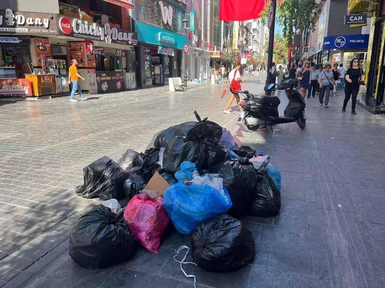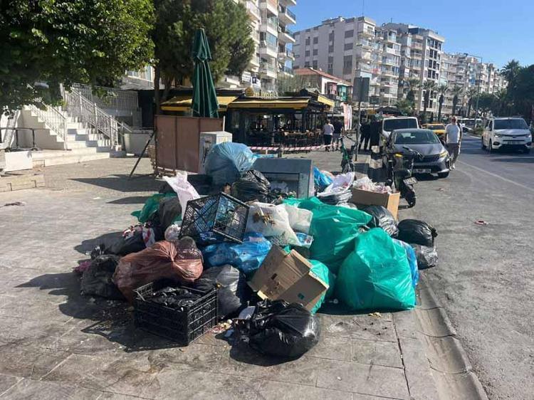 İzmir Karşıyaka'da grev kararı sonrası sokaklarda çöp yığınları oluştu