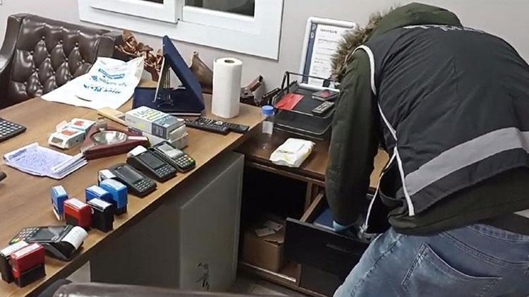 Şüphelilere ait ev ve iş yerlerinde yapılan aramalarda ise 59 klasör içinde çeşitli firmalar adına kesilmiş 10 milyar 978 milyon 367 bin 665 TL e-fatura, bedeli 2 milyar 500 milyon 987 bin 566 TL olan 5 bin 745 adet dolu senet, bedeli 1 milyar 725 milyon 355 bin olan 987 adet tahsilat makbuzu, 40 adet çek, farklı firmalarca düzenlenmiş 500 dekont, 166 boş senet, 94 adet kaşe, 71 sayfa boş çek koçanı, 20 pos cihazı, 6 boş fatura koçanı, çeşitli firmalara ait içinde muhtelif sayıda çeşitli dekontlar ve çek nüshaları bulunan 12 klasör, 1 tabanca, 14 mermi, 1 av tüfeği, 54 kartuş, çok sayıda suç unsuru olan muhtelif evrak, belge ve doküman ele geçirildi. Emniyete götürülen şüphelilerin işlemlerinin sürdüğü bildirildi.